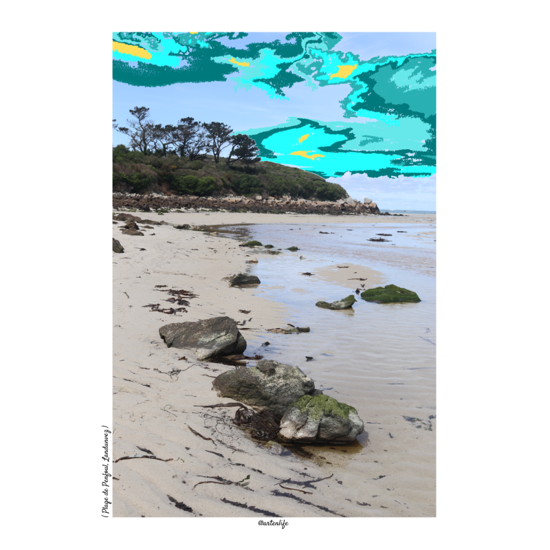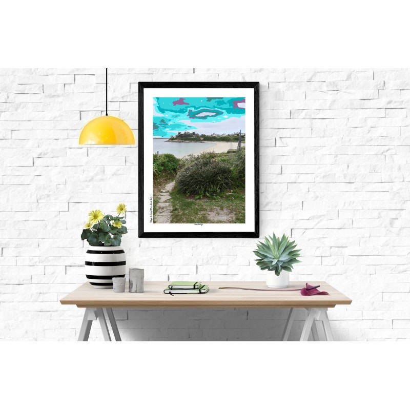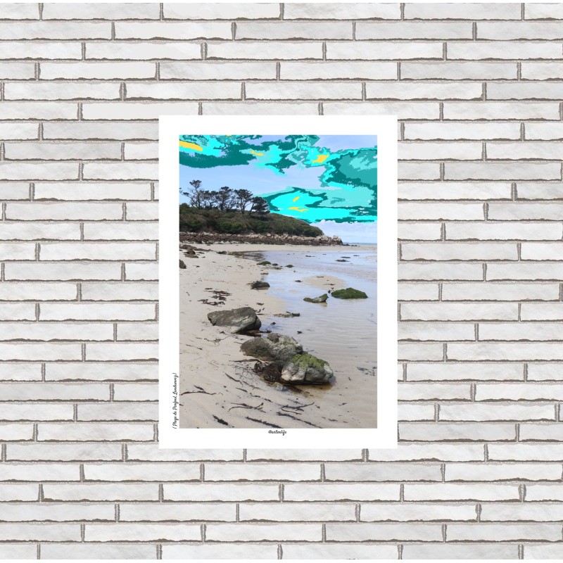 Évadez-vous sur la côte nord du Finistère avec l’affiche “Plage de Penfoul”, une scène paisible et lumineuse qui capture la beauté simple du littoral au printemps.