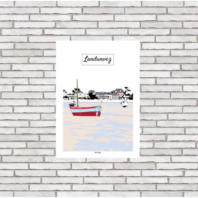 Affiche illustrée du vieux-port du Conquet sur la Rade de Brest dans le Finistère Nord en Bretagne.