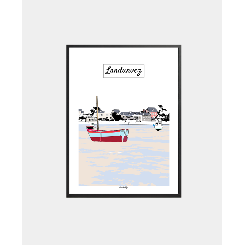 Découvrez la magie tranquille du Port d’Argenton avec cette illustration poétique et colorée, capturant un moment paisible à marée basse sur le littoral breton.