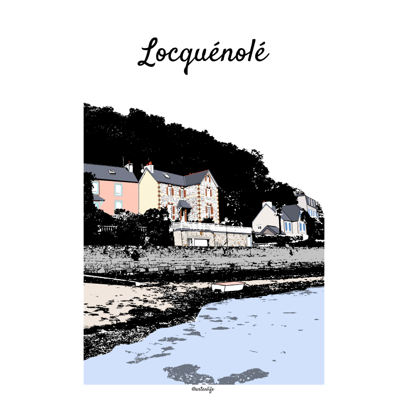 Évadez-vous dans le quartier de Lorezic à Locquénolé, un coin pittoresque de la rivière de Morlaix, avec cette illustration pleine de couleurs douces et de lumière calme.