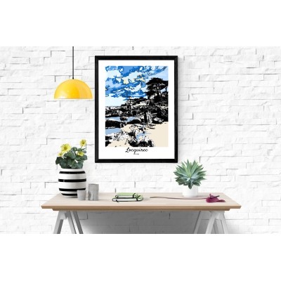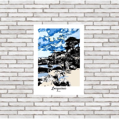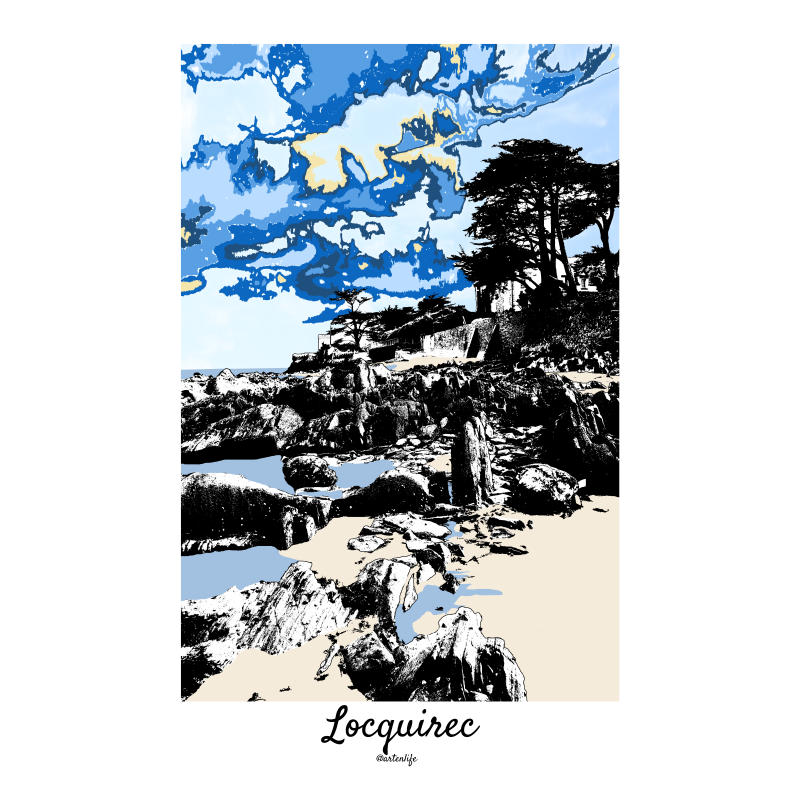 Découvrez la Plage des Rochers du Bilou à Locquirec, un lieu emblématique du Finistère Nord, sublimé dans cette illustration poétique et contemporaine.