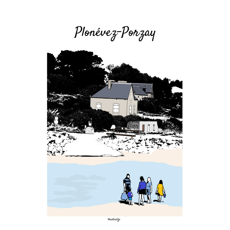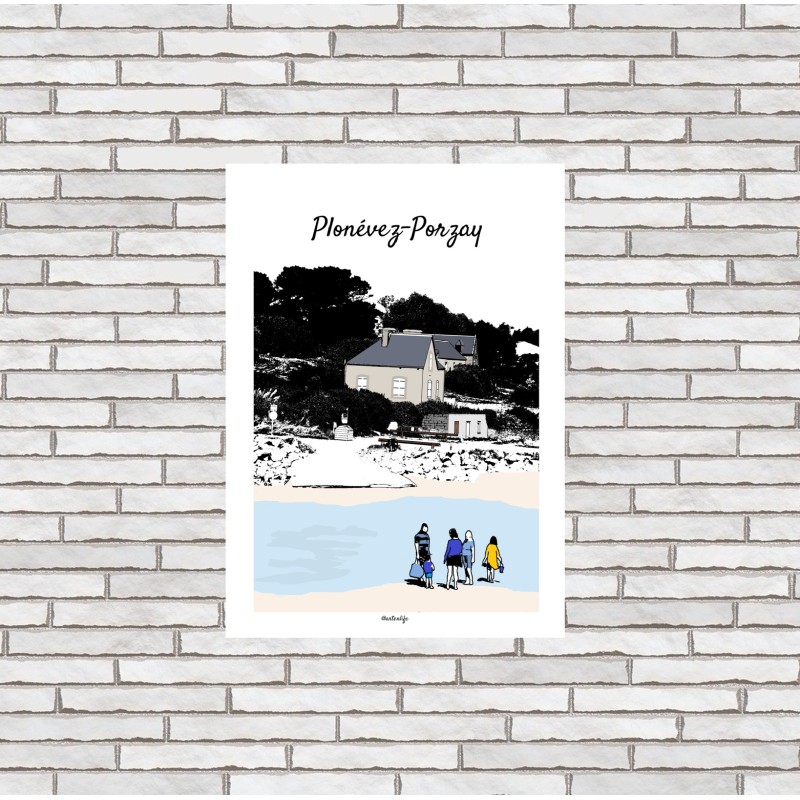 Cette affiche de la plage de Tréguer à Plonévez-Porzay capture la douceur d’un moment simple et authentique sur le littoral du Finistère Sud.