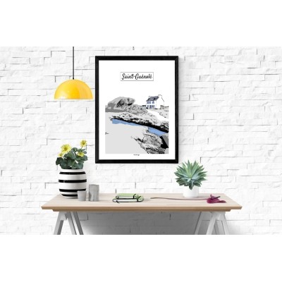 Affiche de la plage de la Cale à l'île Tudy et de ses maisons authentiques dans le Finistère sud en Bretagne.