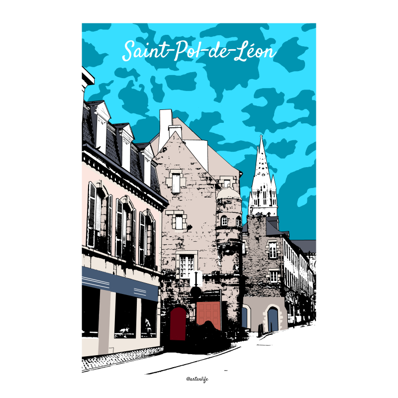 Une affiche bretonne à la fois élégante et vivante, parfaite pour faire entrer l’esprit du Léon et le charme des ruelles bretonnes dans votre intérieur.