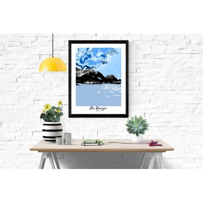 Affiche illustrée des rochers de Siouville dans le Cotentin en Normandie.