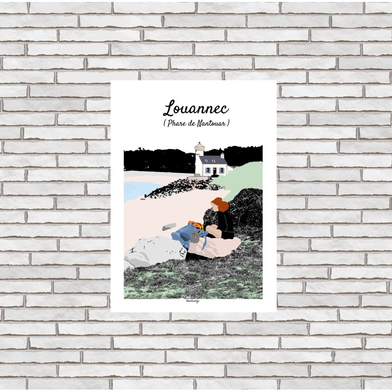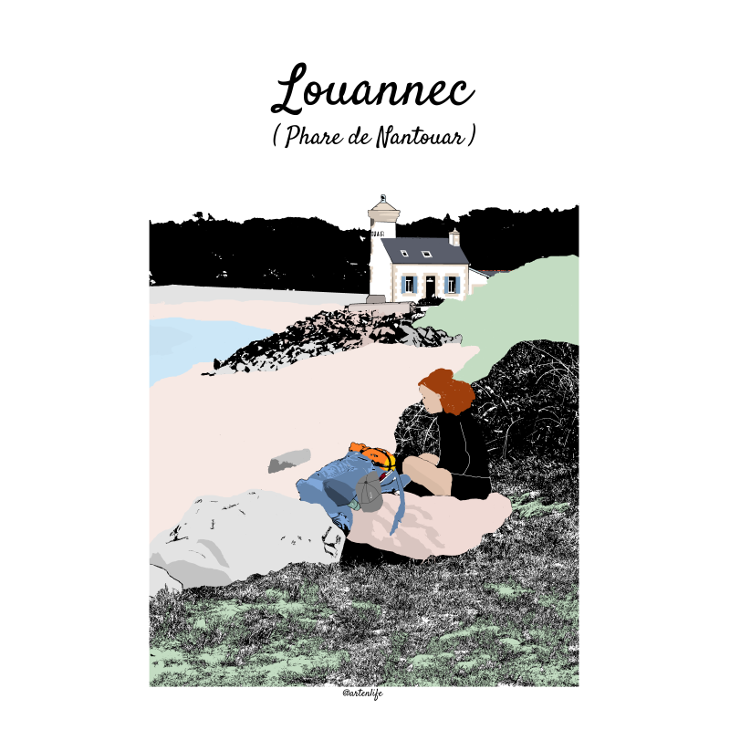 Cette affiche du Phare de Nantouar à Louannec met en scène un instant suspendu face à la mer. Le phare breton se dresse fièrement sur ses rochers protecteurs, symbole de repère et de sérénité sur le littoral des Côtes d’Armor.