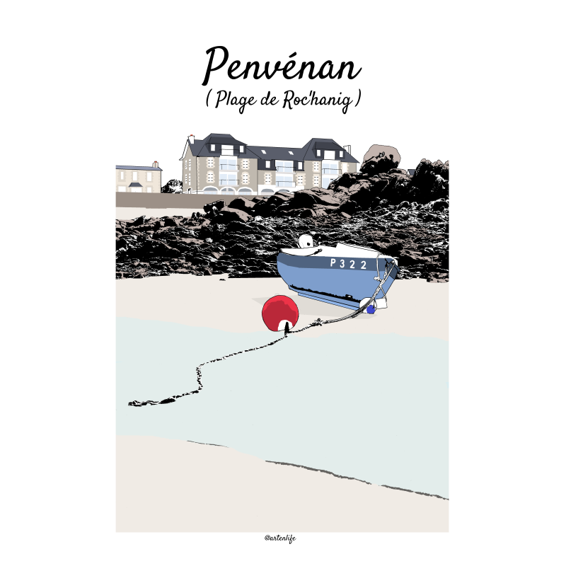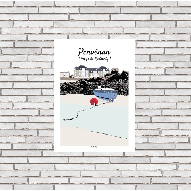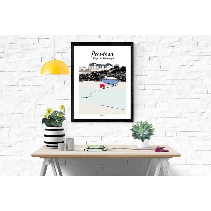 Cette affiche de la plage de Rochanig à Penvénan capture un paysage côtier authentique et apaisant.