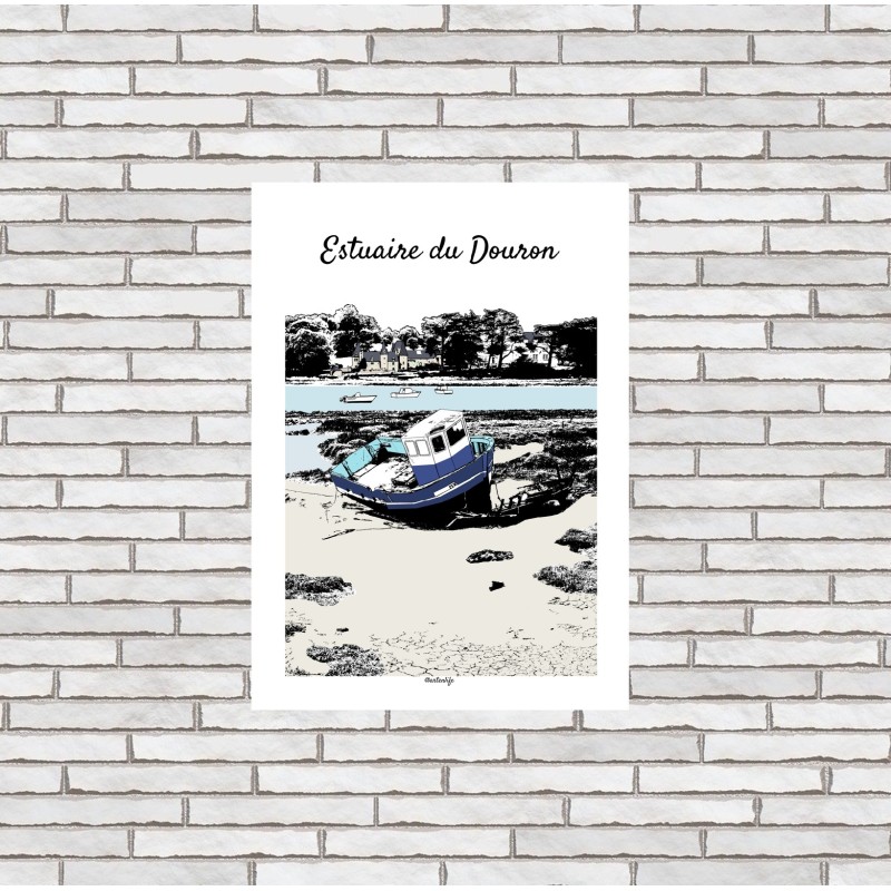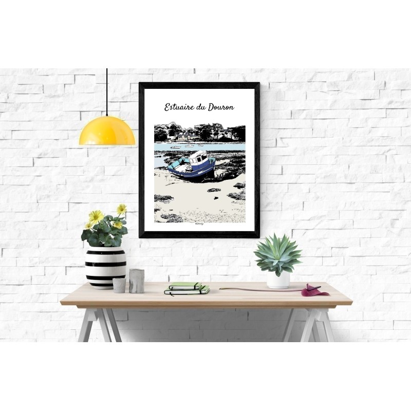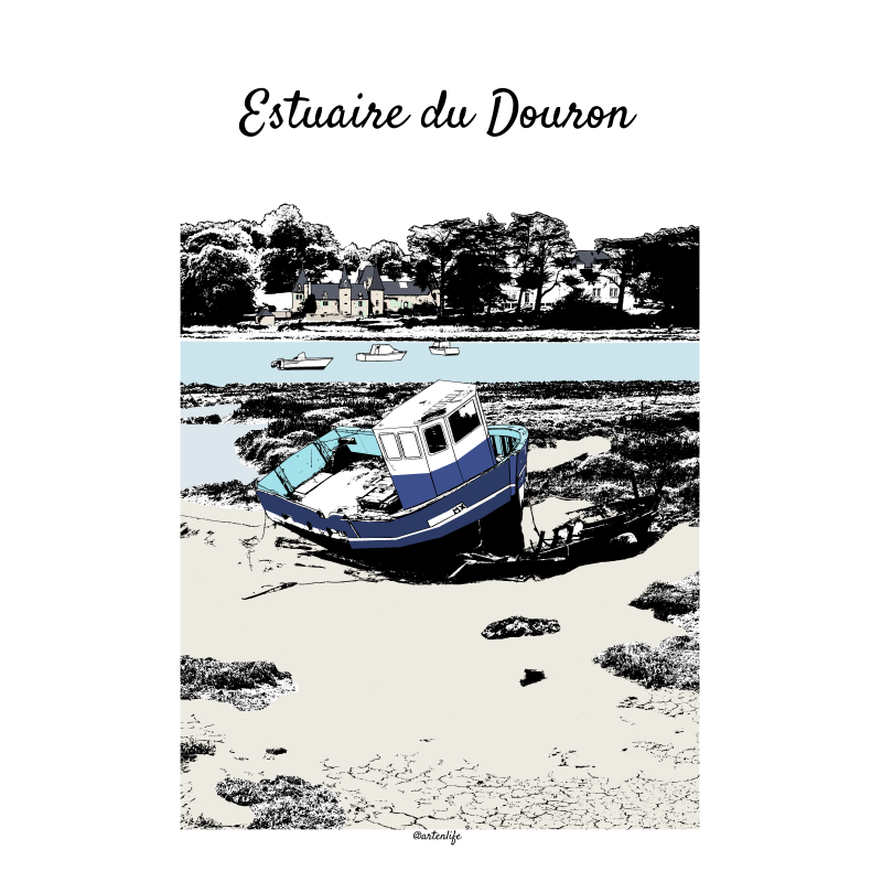 Cette affiche de l’estuaire du Douron à Plestin-les-Grèves capture un paysage paisible, façonné par le rythme des marées.