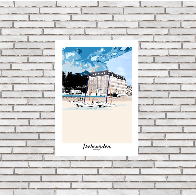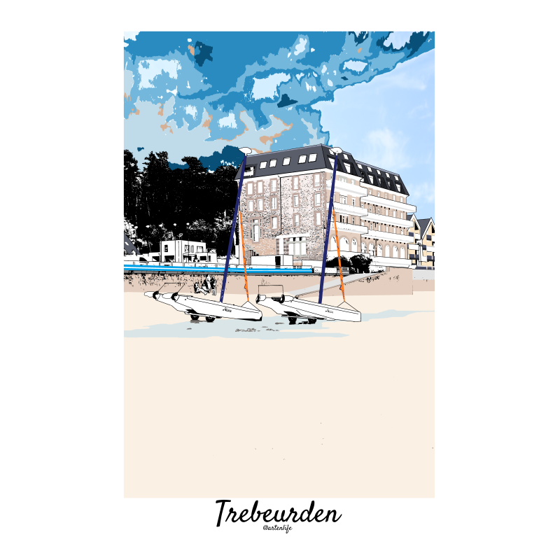 Cette affiche Trébeurden – Plage de Tresmeur illustre un moment de vie paisible sur l’une des plages les plus emblématiques de Trébeurden, dans les Côtes d’Armor.