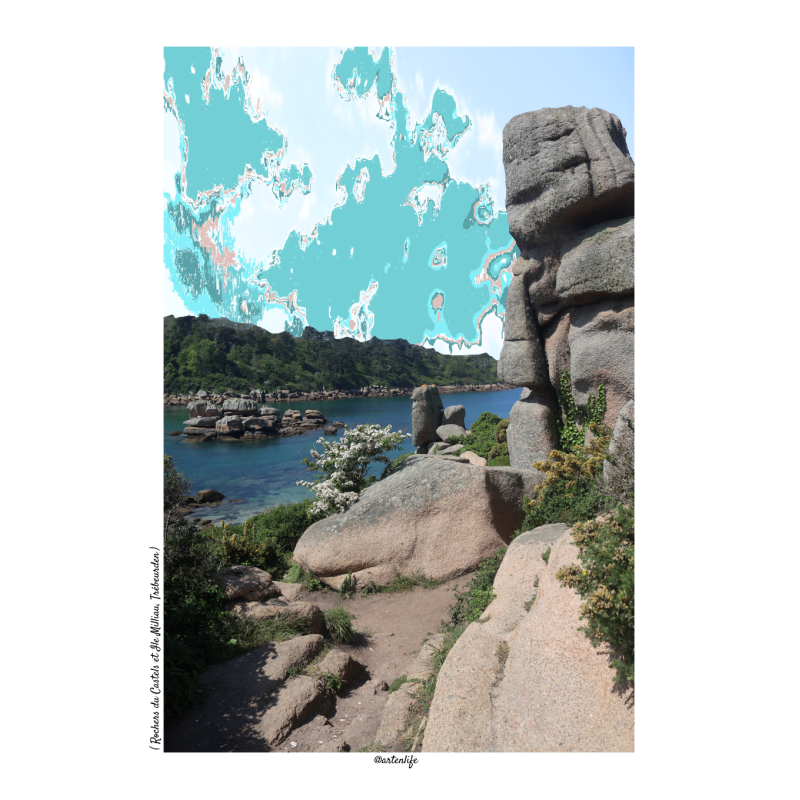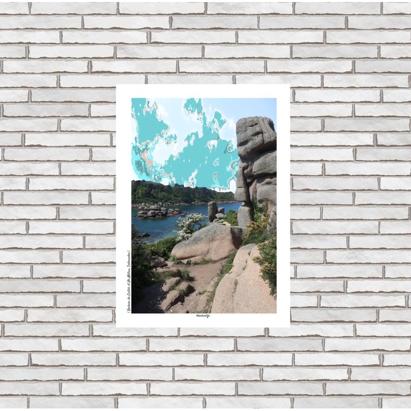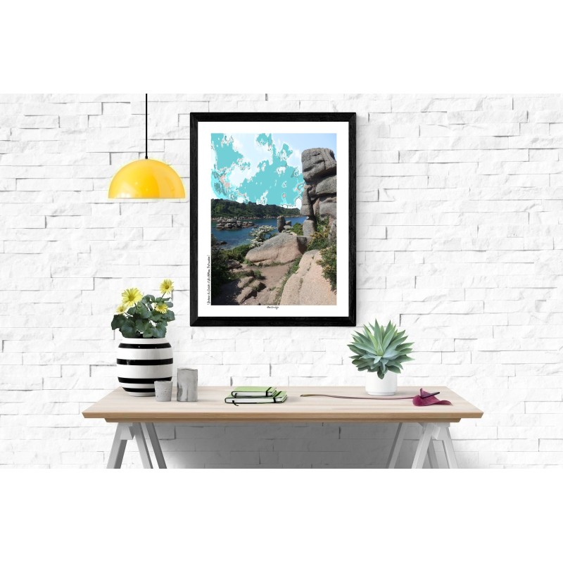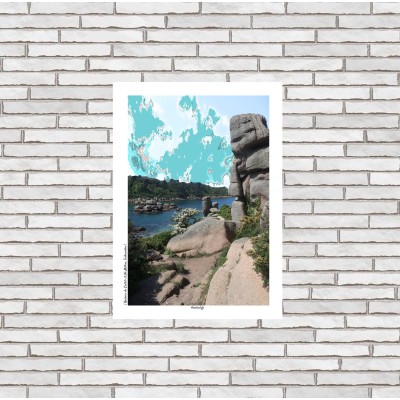 Cette affiche photo Trébeurden – Rochers du Castel propose une vue contemplative et immersive depuis les célèbres rochers du Castel, surplombant la mer et offrant un panorama direct sur l’Île Milliau.