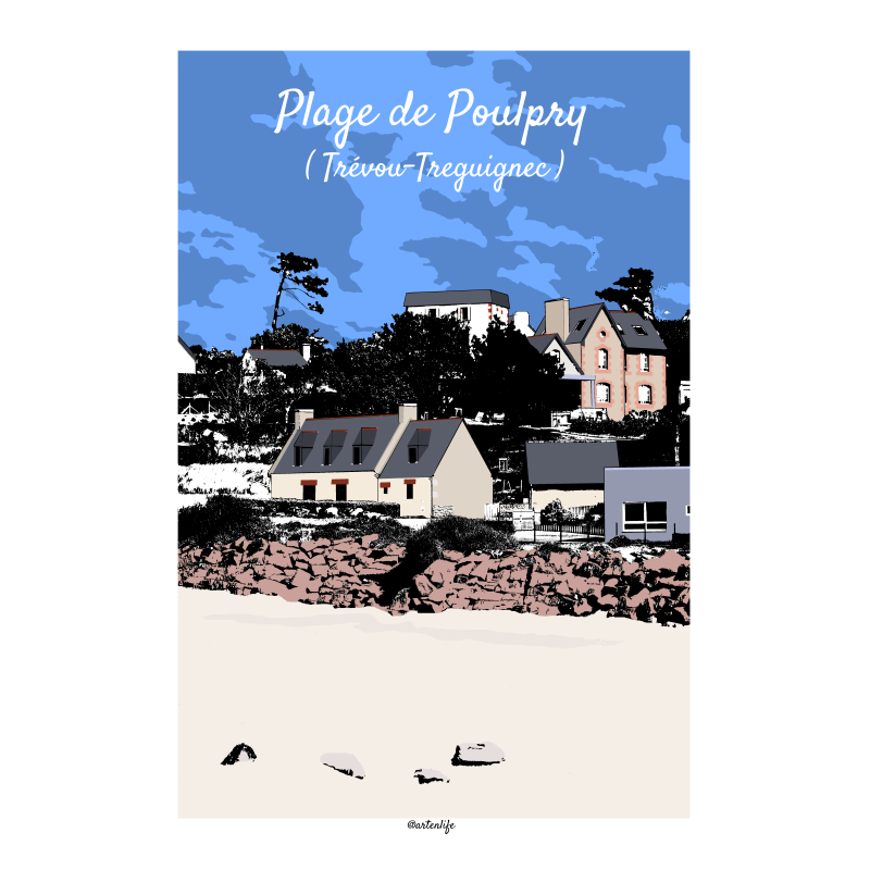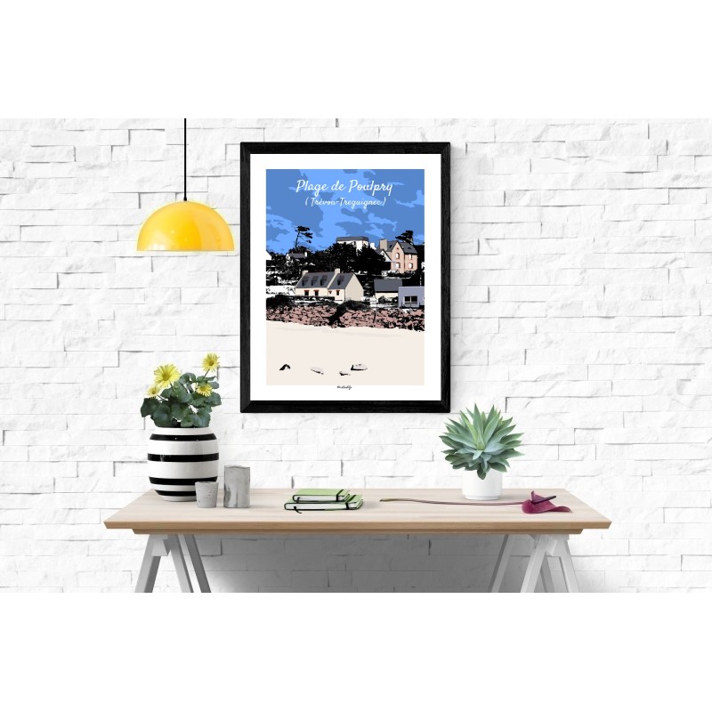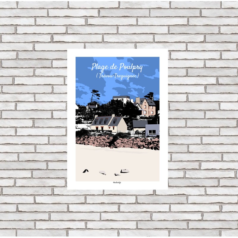 Cette affiche de la Plage de Poulpry à Trévou-Tréguignec capture un instant paisible du littoral breton.